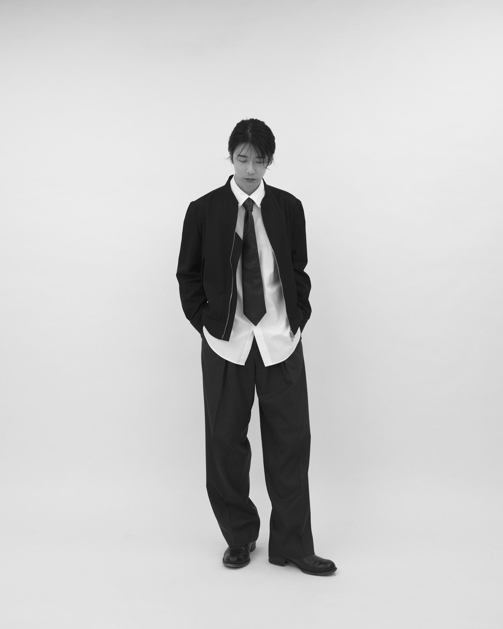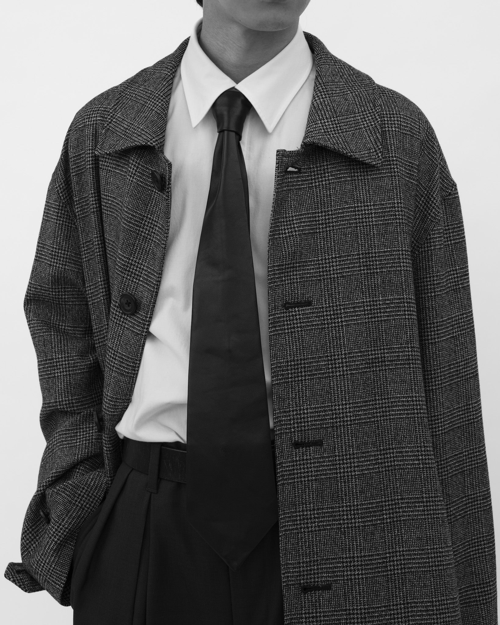 仕立ては比翼で最大限の装飾を排し、ラウンドテールの流れるようなシルエットに。 ボタンには白蝶貝の2つ穴を採用し、光を受けるたびにさりげなく輝きを放ちます。